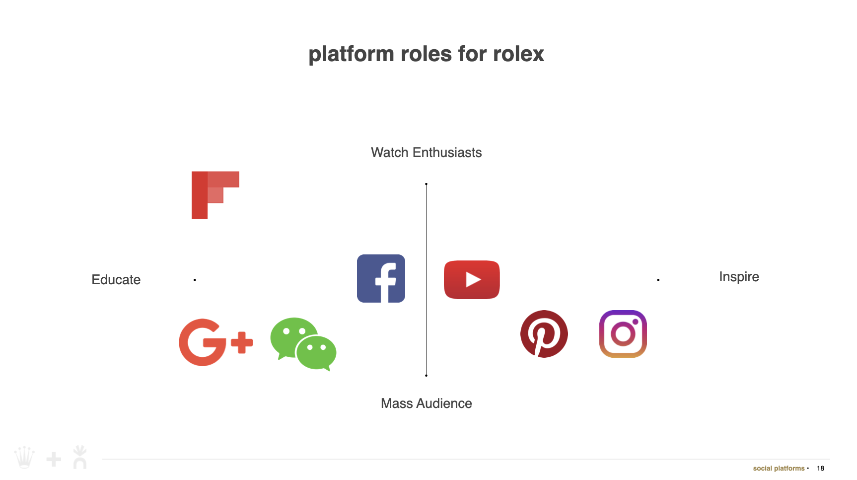 In 2019, my team at Virtue Worldwide rebuilt Rolex’s global social playbook from the ground up. Using social analysis tools, we conducted a thorough competitive audit of other luxury watch brands to find the most advantageous content opportunities for Rolex. We also deeply analyzed their own content to define a path forward for the brand that led to hundreds of thousands of new followers across platforms.