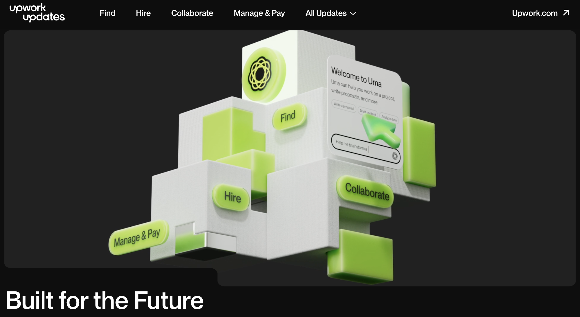 In 2024, my team led the development of Upwork’s first GTM campaign, which included a buildout of two different microsites for each launch (Spring and Fall). For each microsite, we developed over a hundred visual assets to align to a variety of product features. We also ensured that the microsites stayed true to our new brand identity system both conceptually and with our UX decisions.